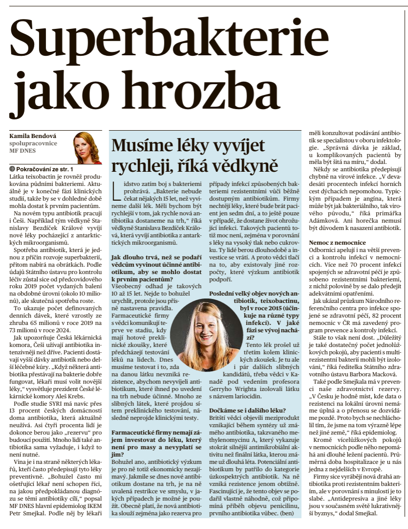 MF Dnes: Na superbakterie antibiotika nestačí