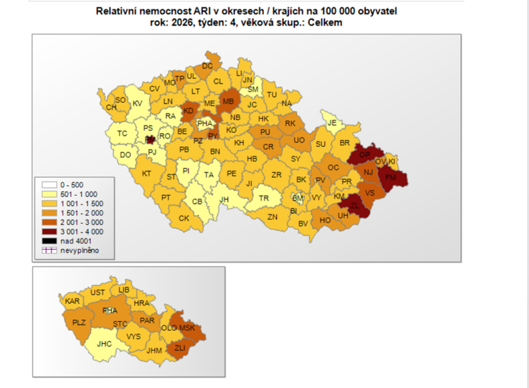 Nemocnost akutními respiračními infekcemi se plošně zvýšila