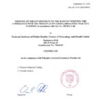 Certificate on the compliance with Principles on Good Laboratory Practice