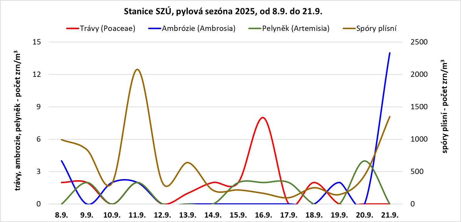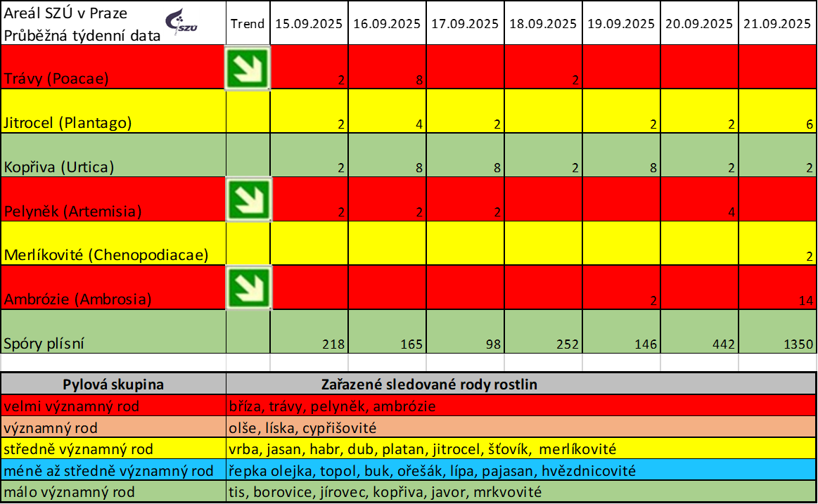Podle typického zastoupení jednotlivých druhů pylů lze pylovou sezónu dělit na několik charakteristických období: jarní, pozdně jarní, letní a raně podzimní. V závislosti na aktuálních meteorologických podmínkách pak (přibližně) platí – charakteristická období roku a typičtí představitelé sledovaných pylů:
